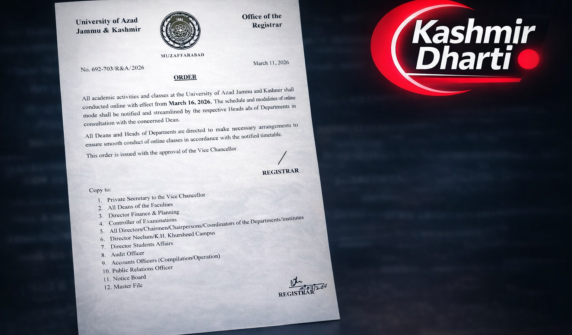 آزاد کشمیر یونیورسٹی میں 16 مارچ سے کلاسز آن لائن ہوں گی